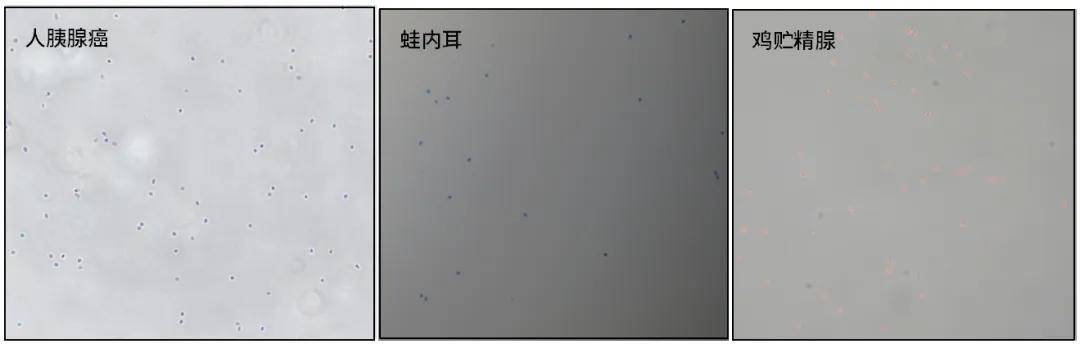 此外,组织解离对于新鲜程度也有所要求,而如果进行单细胞核转录组测序,我们便可避开上述解离难点及直径大小限制,同时组织也可以通过低温冻存方式寄送。接下来小派将以人胰腺癌,蛙内耳,鸡贮精腺三种冻存组织为例,向您展示动物冻存组织的单细胞核悬液制备。