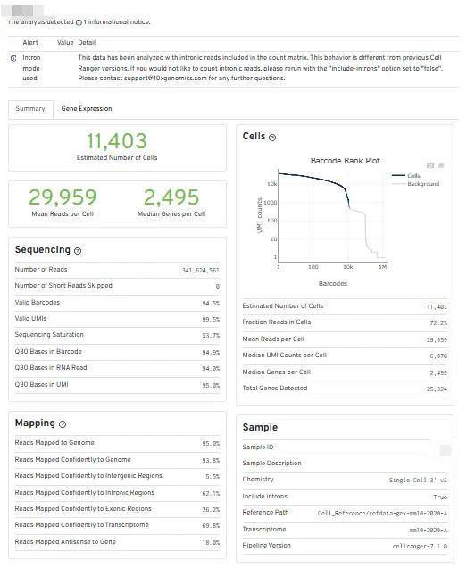 上图是下机数据cellranger质控结果,细胞捕获数及基因数都符合前期需求。