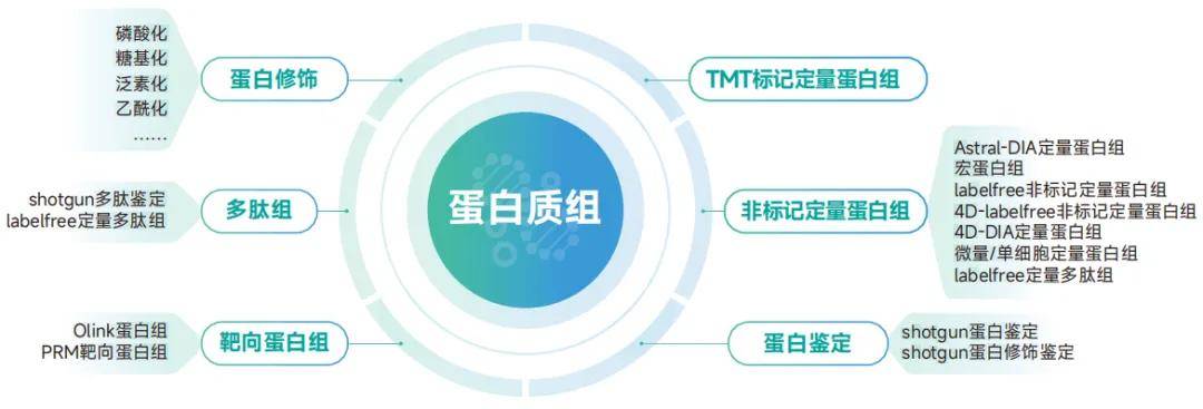 研究样本当中所有蛋白的表达量:TMT标记定量蛋白组、label-free非标记定量蛋白组、4D-DIA蛋白组、Astral-DIA蛋白组等。