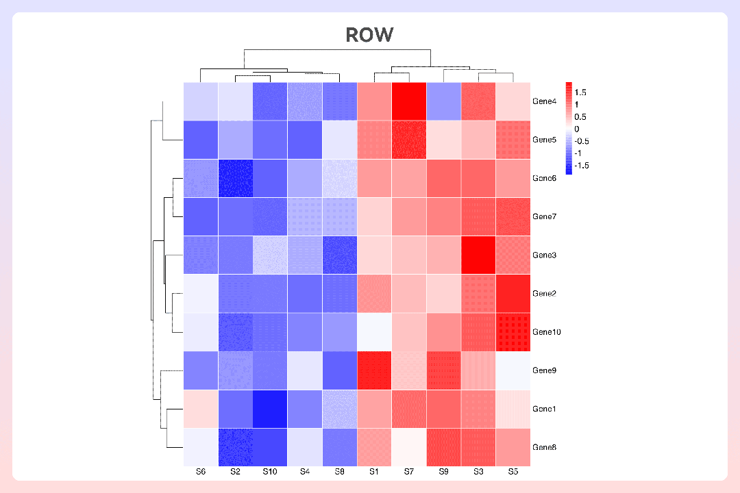 热图提供3种标准化的模式,分别是row(行标准化)、column(列标准化)、none(不标准化)。