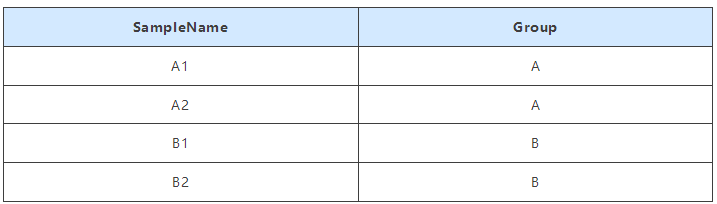交互热图和热图数据文件一致,但还需要一份分组文件,因此交互热图能够支持分组数据的展示。分组文件中第一列为样品名称,第二列为样品所对应的分组名称。