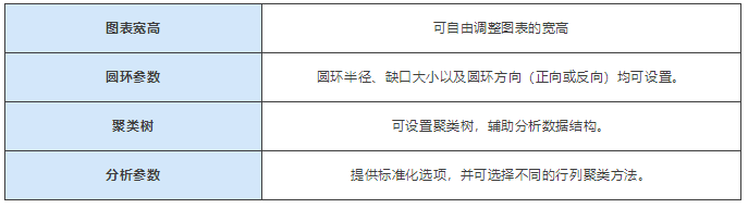 环形展示多个样品之间的关系或相关性。颜色(例如红正/蓝负)仍代表相关性强度,适合探索具有环状结构的数据关系。