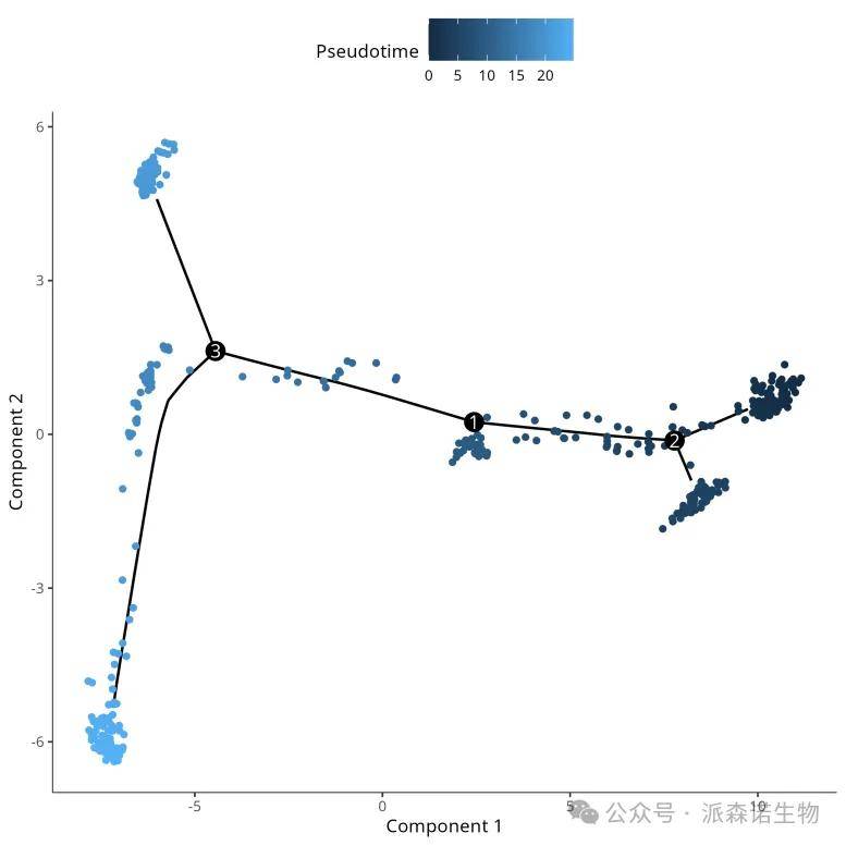 拟时序分析可用于理解细胞在不同功能状态之间的转变,预测细胞的分化及发育轨迹,根据轨迹分布和特征基因的表达变化来确认分化起点和终点。