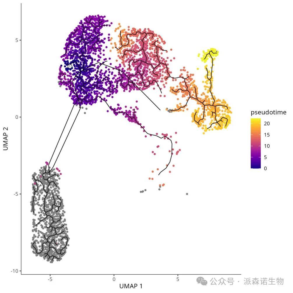 monocle3:基于UMAP降维的分支轨迹分析,支持非线性轨迹和大规模数据,分支分辨率更高。