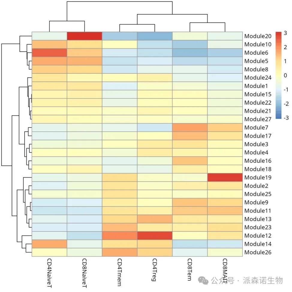 find_gene_modules()、aggregate_gene_expression()等函数从基因表达数据中提取特定基因、进行模块检测、按细胞组聚合基因表达数据并最终生成热图以可视化基因表达模式