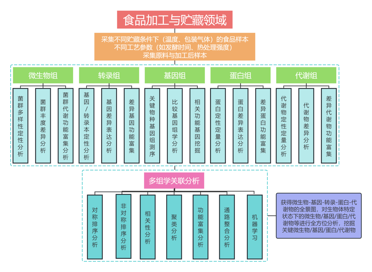 3、派森诺提供多组学检测服务,包括微生物组、基因组、转录组、蛋白组、代谢组及表观调控等,结合多组学联合分析技术,助力食品加工与贮藏领域科学高效突破,案例成果多多。