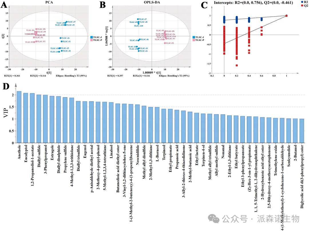 图1 LTSC-J和LTSC-P样品中挥发性风味化合物的差异