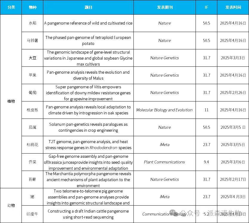 2.2025年上半年已发表的泛基因组文章已经超过10篇,这些文章以泛基因组为主体,依托更加全面、完整和准确的基因组序列信息,为育种提供强力支持。