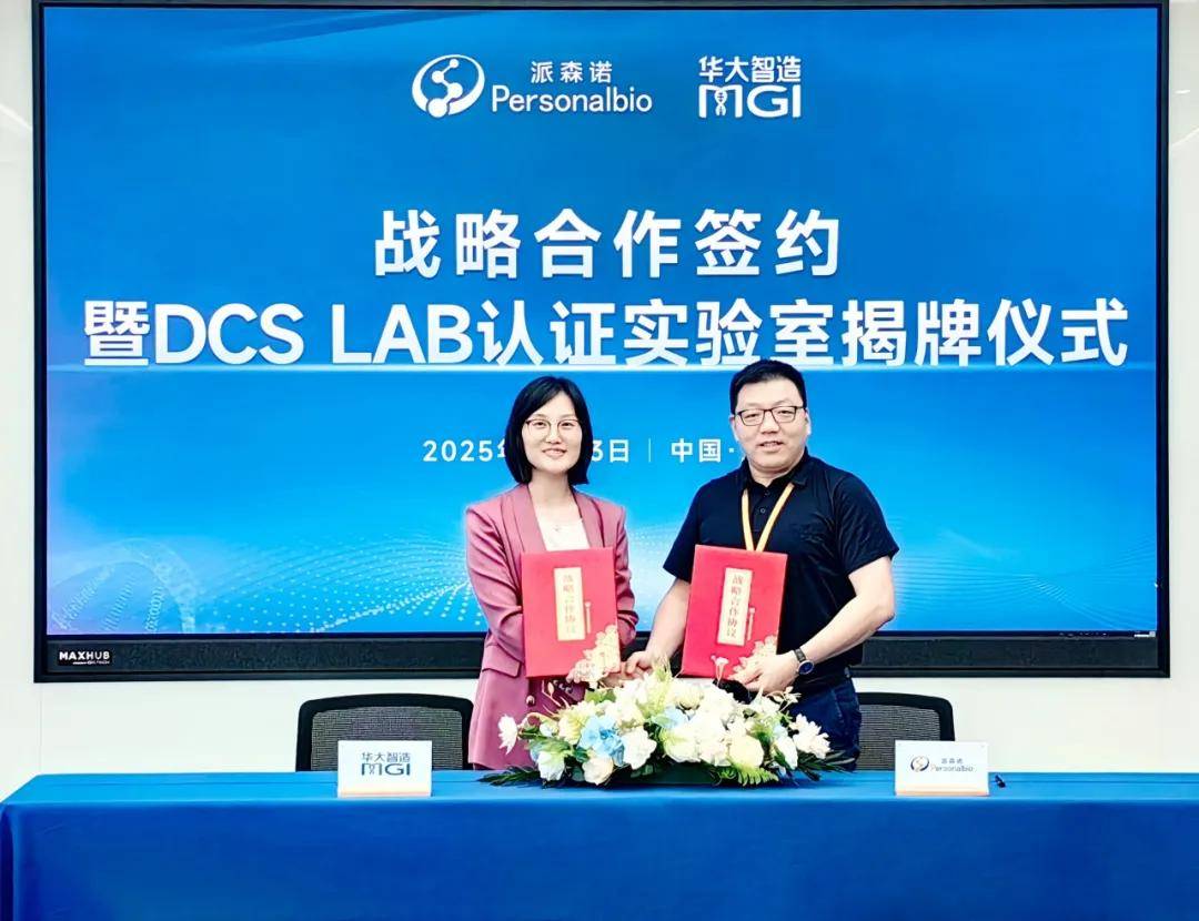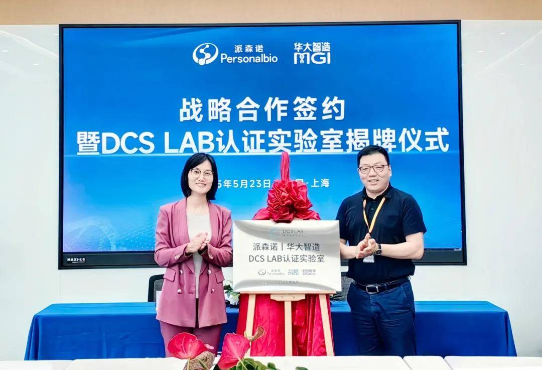2025年5月23日,上海派森诺生物科技股份有限公司(以下简称“派森诺”)与华大智造达成战略合作,并正式宣布“派森诺-华大智造DCS LAB认证实验室”在沪落成。派森诺董事长兼总经理孙子奎先生与华大智造副总裁、中国区总经理彭欢欢女士代表双方签署协议,并共同为DCS LAB认证实验室揭牌。此次签约,标志着双方将深度融合在基因组学、细胞组学和时空组学领域的技术优势,构建多组学技术研发与应用转化的创新平台,为基因科技领域注入全新动能,掀开新的发展篇章。