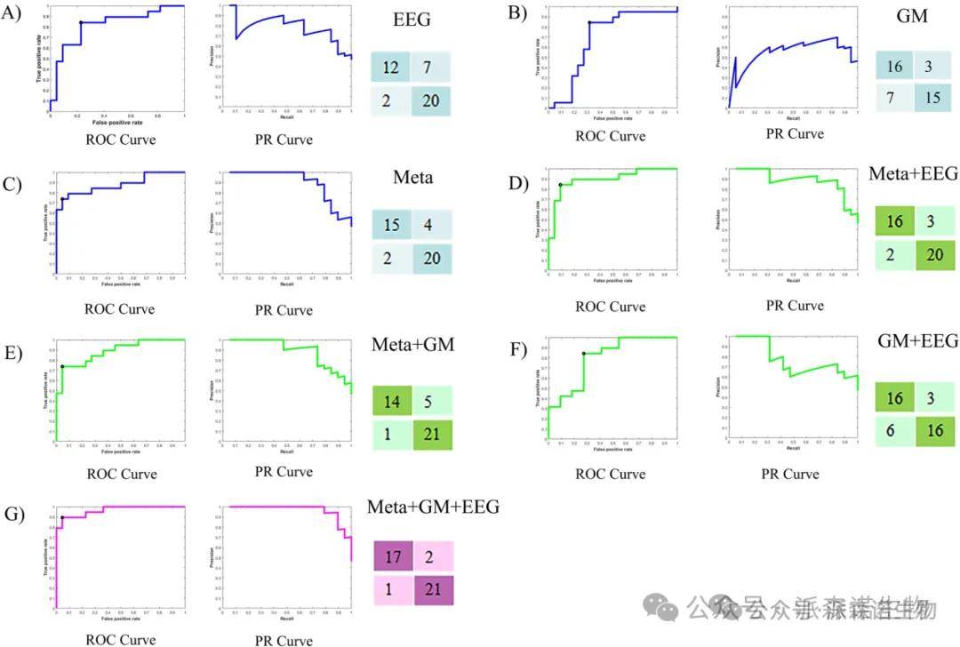 在数据整合层面,研究通过支持向量机(SVM)构建多组学分类模型,融合EEG特征、代谢物、肠道菌群三类数据。在控制特征数量统一(top10特征/组学)前提下,三组学联合模型的分类准确率高达92.69%,显著优于任何单一或双组学模型。该模型的构建不仅展示了人工智能在精准医学中的应用潜力,也体现了组学整合在识别复杂、多因素疾病中的优势。该方法可为未来开发早期筛查工具、个体化治疗方案提供技术支持。