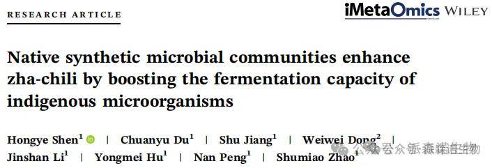[2]Hongye Shen, Chuanyu Du, Shu Jiang, Weiwei Dong, Jinshan Li, Yongmei Hu, Nan Peng, et al. 2025. “Native Synthetic Microbial Communities Enhance zha-chili by Boosting the Fermentation Capacity of Indigenous Microorganisms”. iMetaOmics 2: e70009.