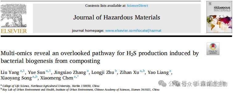 [6]Yang L, Sun Y, Zhang J, Zhu L, Xu Z, Liang Y, Song X, Chen X. Multi-omics reveal an overlooked pathway for H2S production induced by bacterial biogenesis from composting. J Hazard Mater. 2025 Mar 5;485:136827. doi: 10.1016/j.jhazmat.2024.136827. Epub 2024 Dec 9. PMID: 39662346.