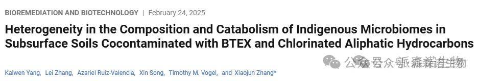 [7]Yang K, Zhang L, Ruiz-Valencia A, Song X, Vogel TM, Zhang X. Heterogeneity in the Composition and Catabolism of Indigenous Microbiomes in Subsurface Soils Cocontaminated with BTEX and Chlorinated Aliphatic Hydrocarbons. Environ Sci Technol. 2025 Mar 11;59(9):4540-4550. doi: 10.1021/acs.est.4c10071. Epub 2025 Feb 24. PMID: 39993154.