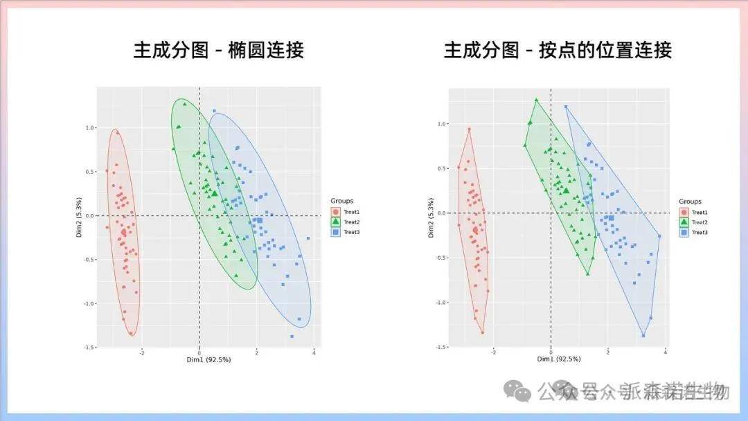 主成分图:通常以散点图形式呈现数据,用于观察数据的分布、聚类或异常模式。