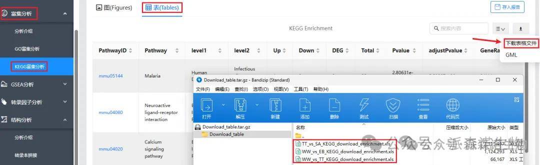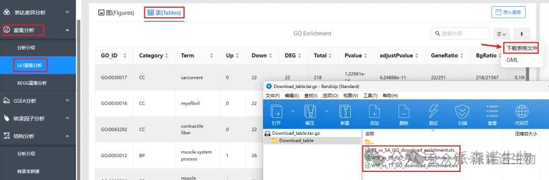 下载的文件为Download_table.tar.gz压缩包,里面是各个比较组的富集总表。