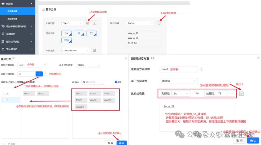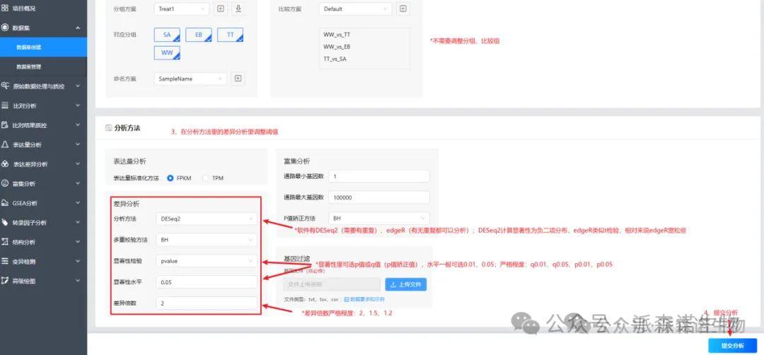 需要对分析结果进行调整的话,老师可以数据集里批量设置。数据集的使用也可以直接在项目概况里点击云平台材料方法和结果查看指南,查看里面的数据集创建&数据集管理部分。