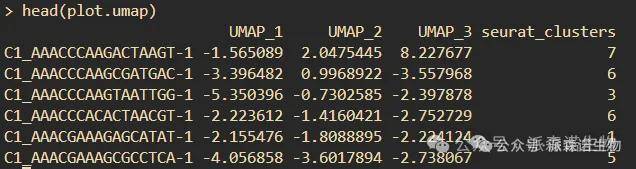 从代码层面,我们需要从3维角度,对整个细胞进行umap降维聚类。不用担心很复杂,RunUMAP有个关键的参数n.components可以设置。代码如下: