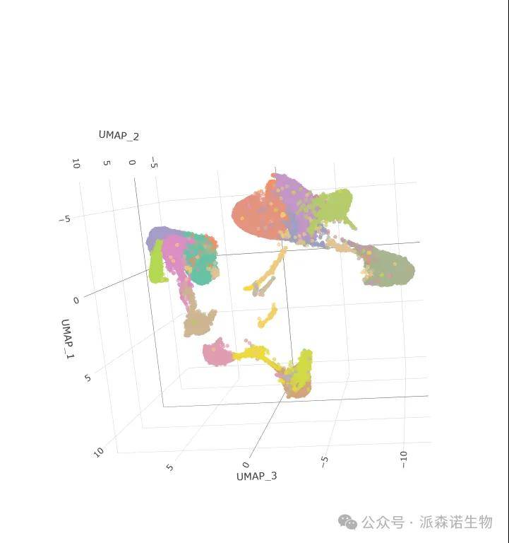 在生命科学微观研究中,单细胞转录组测序(scRNA - seq)作为解析细胞功能与异质性的核心技术,其高维数据的分析常常借助降维可视化方法来帮助理解和解释数据。UMAP 算法因其在保留数据全局结构和局部结构方面的良好性能,成为单细胞图谱研究的常用方法。然而,传统二维 UMAP 图在展现复杂细胞谱系关系(如肿瘤微环境中)时存在一定局限,由于二维平面无法完全呈现高维空间中细胞的复杂关系,易因邻近亚群的重叠而掩盖细胞间潜在关联,影响对细胞异质性的解析。而三维动态 UMAP 图在一定程度上解决了这一问题,它通过引入第三维度更好地呈现细胞亚群的分布关系,并且借助计算机软件或工具的动态交互功能,如实时旋转、缩放与切面观察等,使研究者能够从多个角度捕捉二维视角下易被忽略的差异,为单细胞数据研究提供了全新的立体洞察视角。