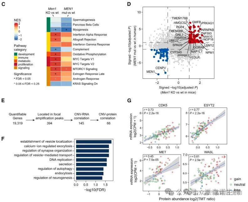 步骤二:蛋白质基因组学分析为NF-PanNETs的基因组驱动变异提供了功能学阐释,并利用Men1条件性基因敲除小鼠揭示了MEN1变异潜在的作用机制。