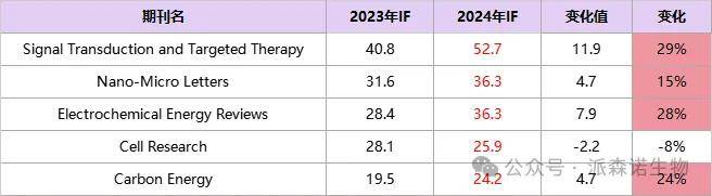 中国期刊在此次榜单中表现尤为抢眼。Signal Transduction and Targeted Therapy(四川大学华西医院主办)以52.7的影响因子领跑国产期刊,其影响力已超越许多老牌国际期刊。Nano-Micro Letters(上海交通大学主办)、Electrochemical Energy Reviews(上海大学主办)和Carbon Energy(温州大学主办)等顶级期刊影响因子增长也达到了15%以上。