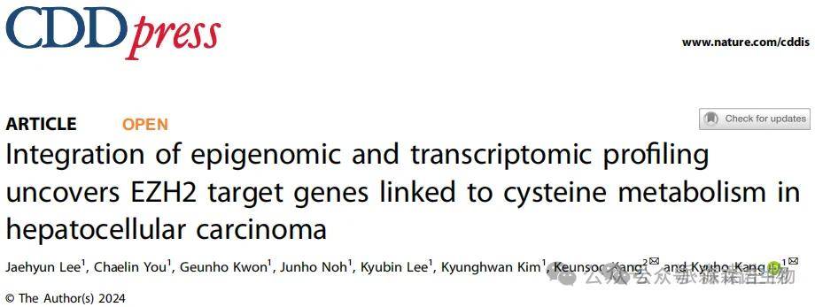 中文标题: 表观组与转录组联合分析揭示EZH2调控半胱氨酸代谢的靶基因并助力肝癌治疗