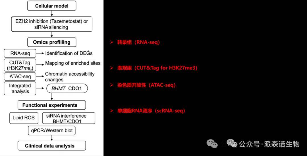 本研究系统整合表观组、转录组和染色质可及性数据,明确了EZH2在HCC中通过抑制BHMT和CDO1介导的半胱氨酸代谢,促进肿瘤细胞逃避铁死亡。同时验证其作为潜在靶点的治疗意义。该研究为HCC精准治疗提供了新机制支持,也强调了多组学联合分析在复杂疾病机制研究中的应用价值。
