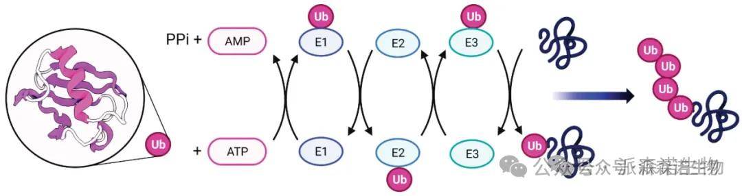 泛素是一类在真核细胞中普遍存在的由76个氨基酸组成的高度保守小分子。一个或多个泛素分子能够在一系列酶的作用下共价连接至蛋白质底物上,形成泛素化修饰。泛素-蛋白酶体系统是细胞内绝大多数蛋白质降解的主要方式之一,因此蛋白质泛素化修饰是与蛋白质降解和功能调控密切相关的翻译后修饰形式。蛋白质泛素化研究有助于了解细胞周期调控、增殖与分化、凋亡以及蛋白质周转代谢的机制。
