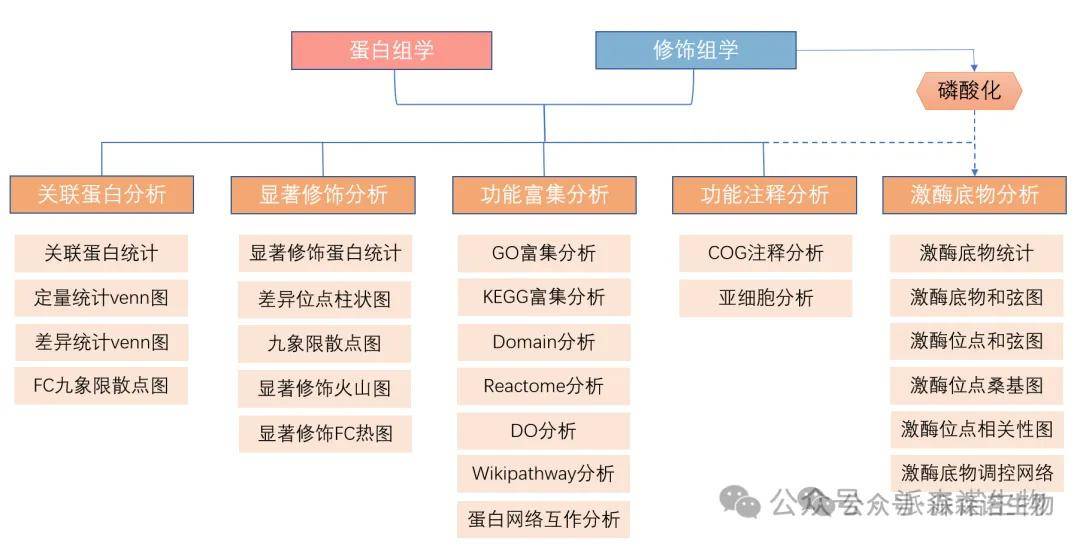 蛋白质作为生命活动的核心执行者,其功能调控不仅依赖于丰度变化,更受到翻译后修饰(PTM)的动态调节。磷酸化、乙酰化、糖基化等修饰通过改变蛋白质活性、定位及相互作用,在细胞信号转导、代谢调控、疾病发生等过程中发挥关键作用。然而,单一维度的蛋白质组学分析难以全面揭示复杂生物机制:例如,某些蛋白丰度未发生显著变化,但其功能可能因修饰水平改变而重塑。因此,蛋白质组与修饰组学的联合分析,已成为系统解析分子调控网络的核心策略。
