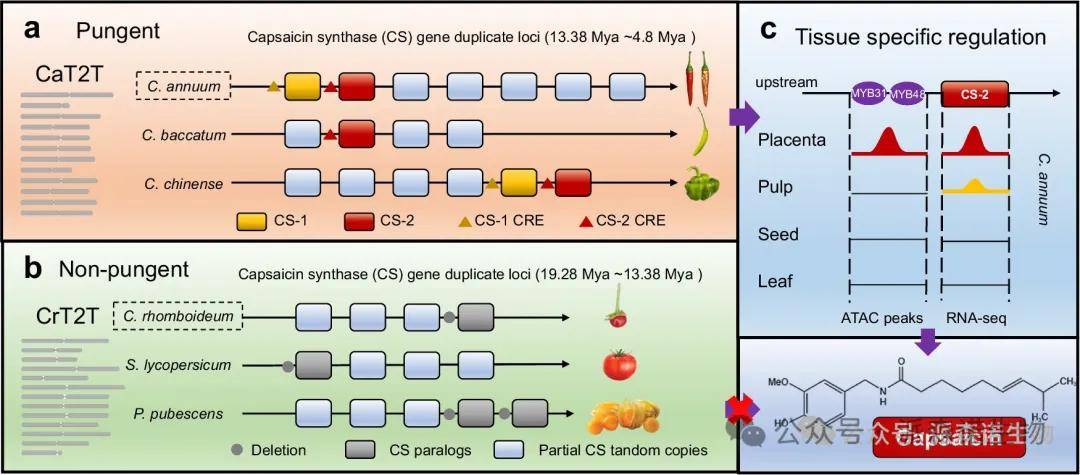 (3)辣椒素生物合成的组织特异性是由特定的表观遗传调控机制控制的。这些发现为理解辣椒的进化提供了新见解,并为培育具有理想辛辣特性的辣椒品种提供了遗传资源。