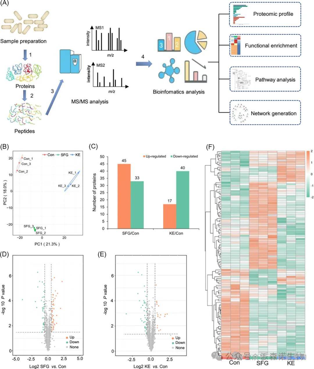 图 1. 用SFG或KE治疗的金黄色葡萄球菌的蛋白质组学分析。