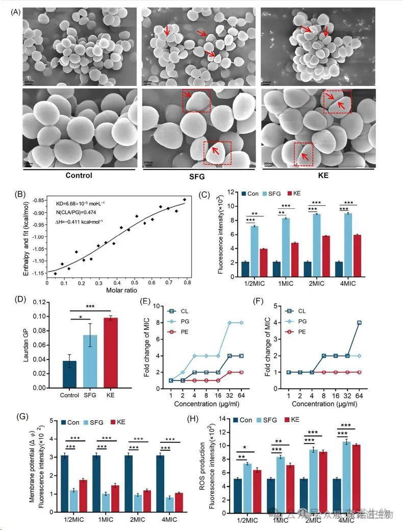 图 5. SFG和KE通过破坏细胞膜发挥抗菌作用