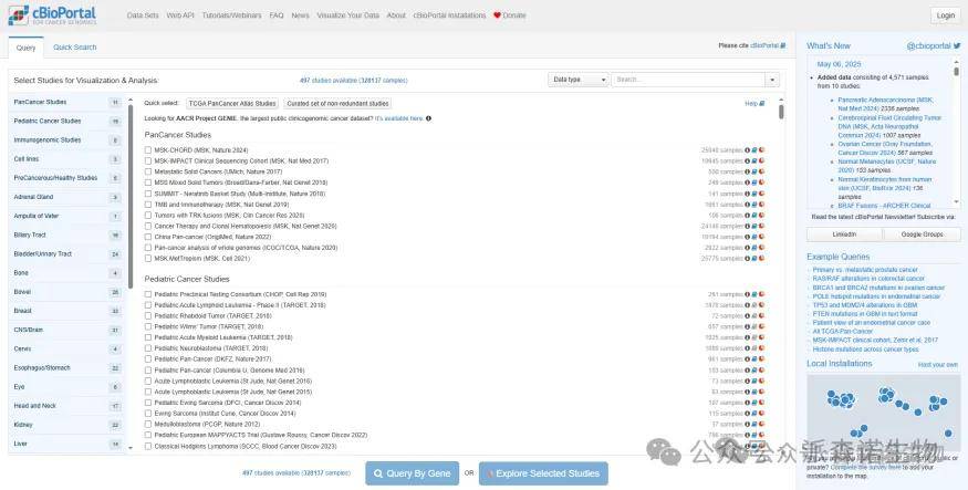 聚焦癌症研究的小伙伴,cBioPortal绝对是绕不开的核心工具,尤其适合结合转录组数据进行多维度分析。cBioPortal是一个开源的综合性癌症基因组学数据库和分析平台,由Memorial Sloan Kettering Cancer Center(MSK)开发并维护。它整合了来自TCGA、ICGC等大型项目以及已发表研究的癌症基因组数据,为研究人员提供可视化和分析工具。