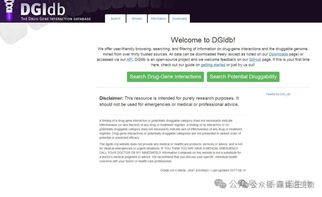 DGIdb数据库(Drug-Gene Interaction Database),是一个药物-基因相互作用数据库,提供了基因与其已知或潜在药物关联信息,目前已经更新到4.0版本。里面的基因主要是癌基因,但是也有一些其他疾病(例如阿尔兹海默病、心脏病、糖尿病等)的相关基因。DGIdb一共有超过14000种药物-基因的相互作用,涉及2600个基因和6300中靶向这些基因的药物,还包括了6700个其他的基因,这些基因很有可能成为未来药物的靶标。