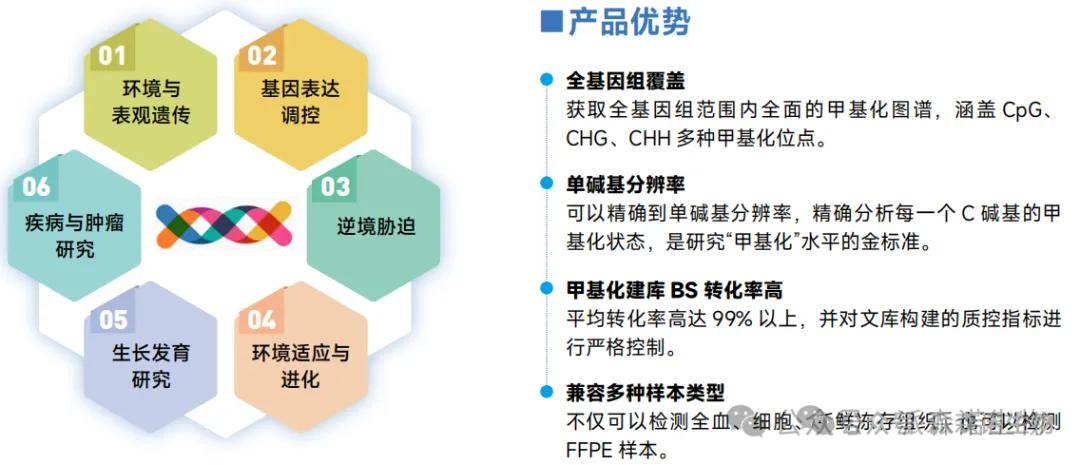 全基因组重亚硫酸盐甲基化测序(WGBS)是一种用于检测生物体基因组中DNA甲基化位点(CpG、CHG、CHH)的技术。通过高通量测序平台,对基因组DNA进行全覆盖的甲基化分析,以揭示DNA甲基化在不同组织、发育阶段和疾病状态下的变化。广泛应用于细胞分化、组织发育、动植物育种及人类健康与疾病研究等领域。