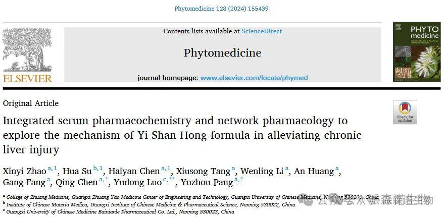 引文:Zhao X, Su H, Chen H, et al. Integrated serum pharmacochemistry and network pharmacology to explore the mechanism of Yi-Shan-Hong formula in alleviating chronic liver injury. Phytomedicine. 2024;128:155439. doi:10.1016/j.phymed.2024.155439