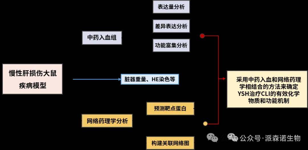 研究背景:慢性肝损伤(CLI)是肝病常见的病理过程。其特点是发生纤维化和肝硬化,最终导致肝脏再生能力下降。连续发生肝损伤的患者有发展为肝硬化和肝功能衰竭的风险,这会导致整体生活质量下降。慢性缺血性心肌梗死导致全身多器官功能衰竭的确切原因尚不完全清楚,但可以推测是一系列不利因素共同作用的结果,其中包括氧化应激和细胞凋亡引发的炎症。依山红(YSH)是一种经验衍生的治疗方法,在治疗慢性肝损伤方面具有安全性和有效性。然而,人们对依山红的生物活性成分和多方面作用机制了解的尚不清楚。