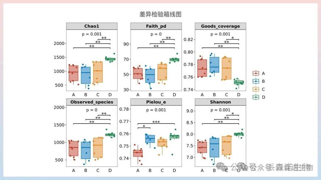 用于比较两组或多组数据的分布差异,并标注统计显著性(如P值)。