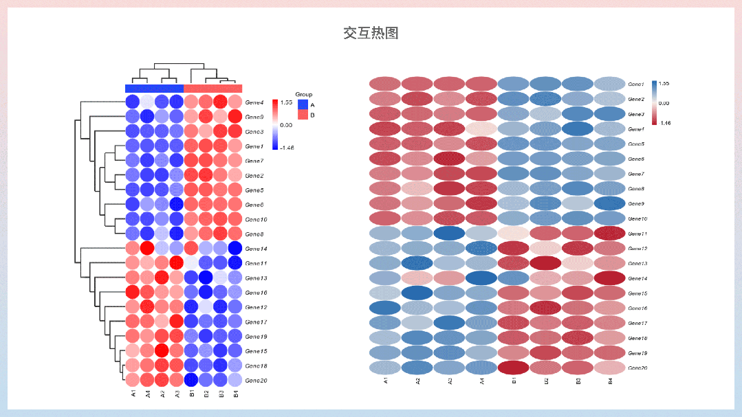 交互环形热图:节省空间,适合展示多层级数据(如基因组环状结构)。