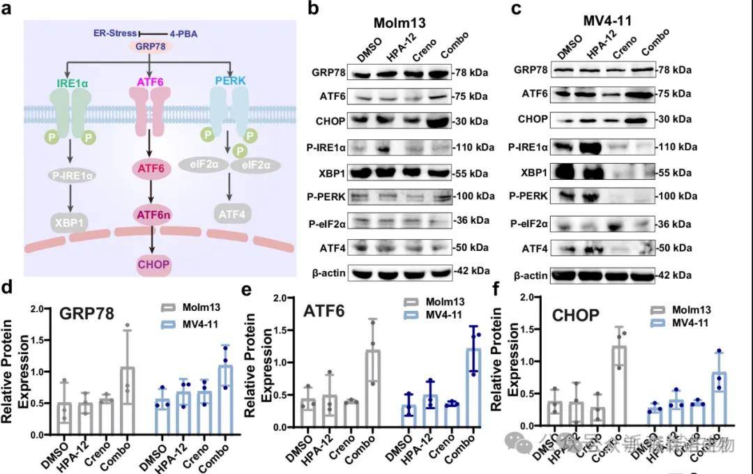 神经酰胺转移蛋白(CERT)决定细胞中神经酰胺与鞘磷脂的比例,靶向CERT可使实体癌细胞对化疗敏感,但在急性髓系白血病(AML)中的作用尚不明确。研究团队发现,CERT在FLT3-ITD突变的AML细胞中高表达,用HPA-12抑制CERT或基因敲低CERT,可剂量依赖性抑制该类细胞生长并促进凋亡,对FLT3-WT细胞影响小。HPA-12与FLT3抑制剂Creno联合使用,对FLT3-ITD突变AML细胞的抑制效果显著优于单药,具强协同作用,对FLT3-WT细胞呈拮抗。在AML异种移植小鼠中,联合治疗能降低白血病负荷、延长生存期。机制上,联合治疗诱导神经酰胺在细胞内质网积累,激活内质网应激-GRP78/ATF6/CHOP轴和线粒体自噬。靶向CERT与FLT3抑制剂联用,可通过GRP78-ATF6-CHOP轴和线粒体自噬等机制,增强FLT3抑制剂在AML治疗中的疗效,为AML治疗提供了新的有效策略。