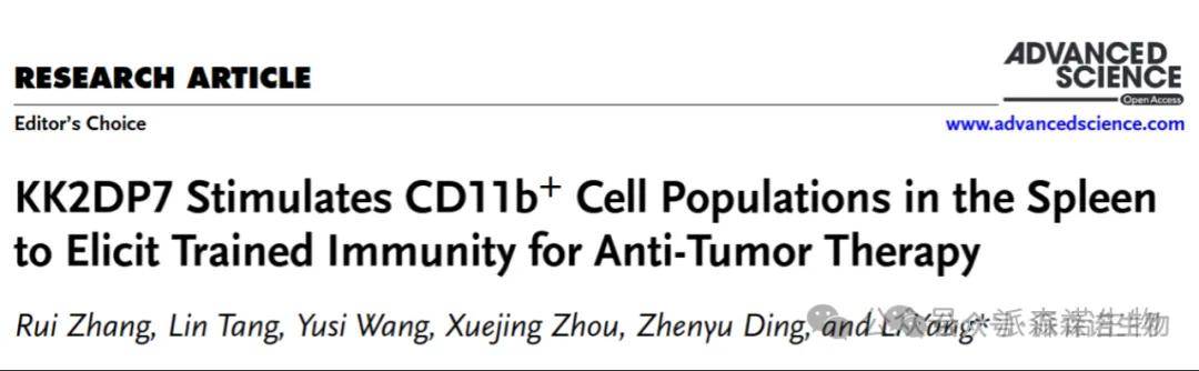 KK2DP7刺激脾脏中CD11b+细胞群引发抗肿瘤治疗的训练免疫