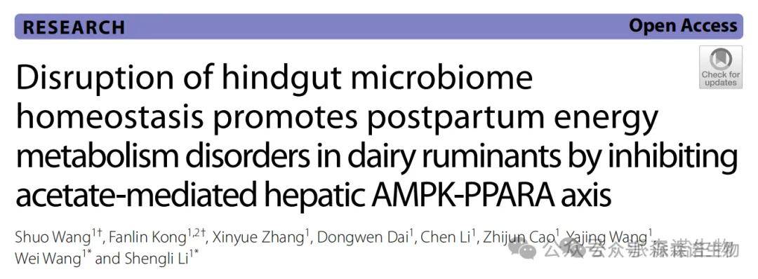 后肠微生物组稳态破坏通过抑制乙酸介导的肝脏AMPK-PPARA轴促进反刍动物产后能量代谢紊乱
