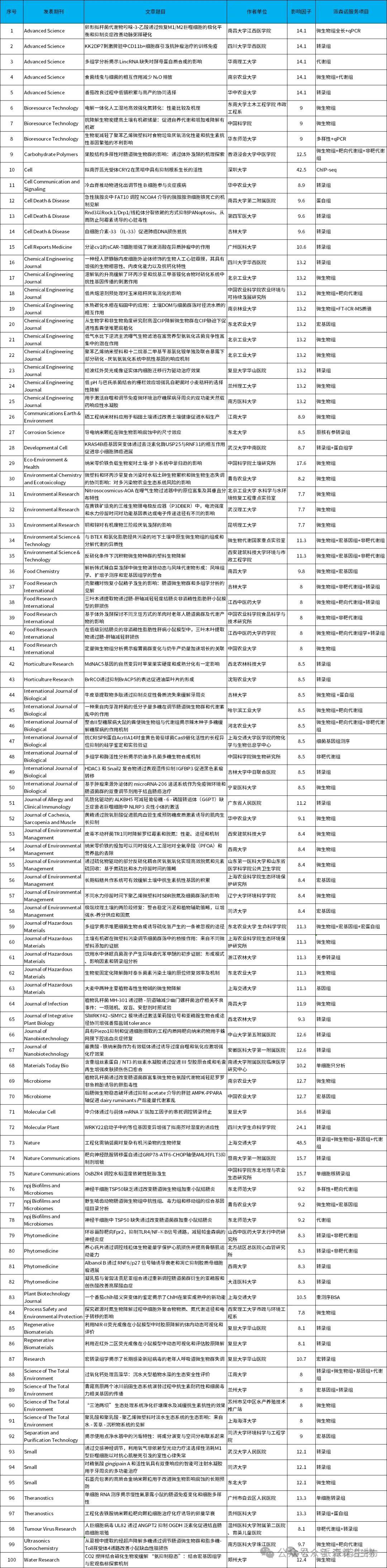 截至2025年8月,派森诺生物合作发表的项目文章数量达1100+篇,累积影响因子达6200+分,呈现“量质双高”。其中,影响因子超过10分的高水平文章超120篇,发表国际顶级学术期刊涵盖Nature、Cell、Molecular Cell、Nature Communications、Advanced Science、Microbiome、Molecular Plant、Eco-Environment & Health及Small等,全面覆盖生命科学多个细分领域的顶级学术阵地。为帮助更多科研工作者精准把握领域研究热点、拓宽创新思路,本期内容中,小编特别精选了多篇具有代表性的高分文章案例进行分享,为大家的基础研究突破、跨领域课题探索及高水平成果发表提供切实可行的思路参考与经验借鉴。