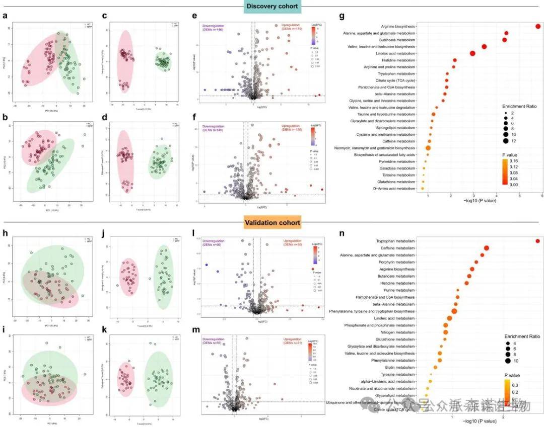 非靶向代谢组学分析揭示发现队列和验证队列中MPP与HC之间的代谢差异