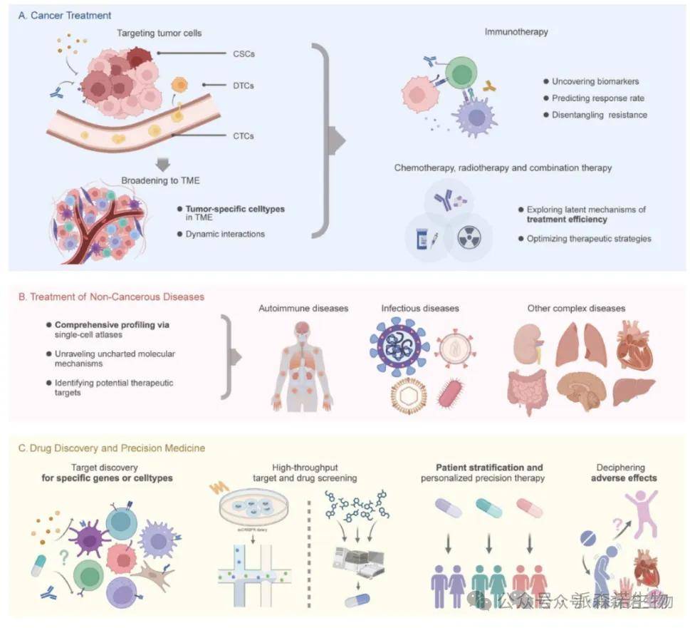 单细胞组学在癌症治疗、非癌症疾病治疗以及药物发现和精准医疗中的临床应用