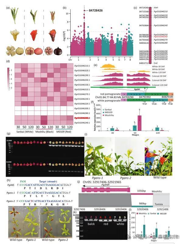 图5|破坏PgANS的独特的染色体易位导致石榴的白色果皮