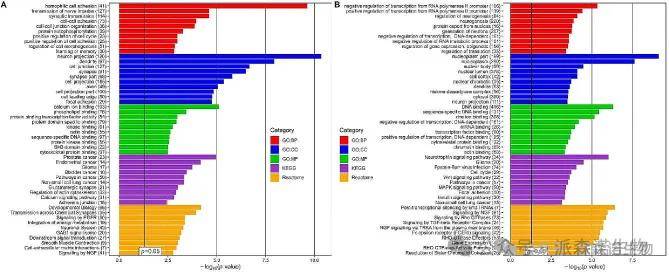 使用 miRNet 2.0 工具分别对上调和下调 miRNA 集进行功能富集分析。上调 miRNA 的基因靶点在癌症相关通路、信号转导、代谢、钙离子和蛋白质结合、细胞-细胞通讯、细胞黏附以及细胞连接组织等方面相关术语中显著过量表达。在下调 miRNA 这一组中,最突出的通路是神经营养因子信号通路以及 Wnt 和丝裂原活化蛋白激酶(MAPK)的信号通路。此外,它们还被发现调节与转录和翻译、内分泌系统、细胞群落以及锌离子结合相关的进程(图 3B)。