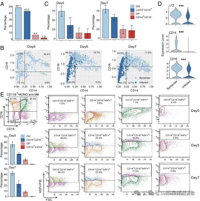 图4. 未成熟的单核细胞比常规单核细胞对非洲猪瘟病毒的感染更具耐受性[4]