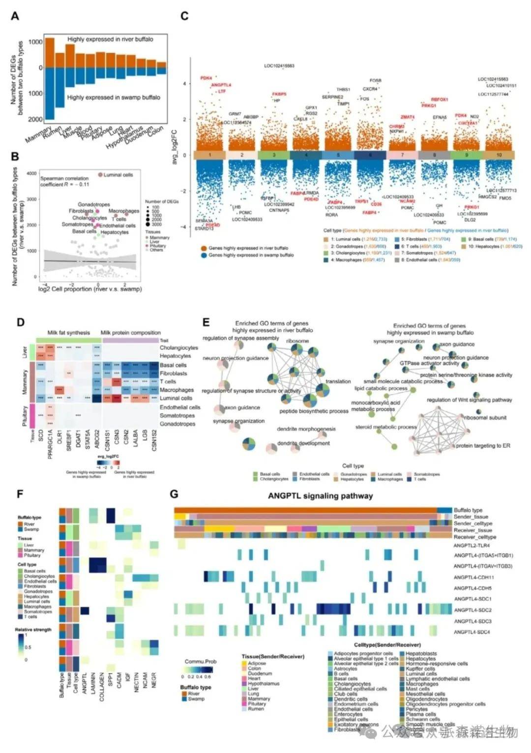 图7. 河流型水牛乳腺腔细胞中,多数乳蛋白基因(如CSN1S1、LALBA)高表达,表明它们在泌乳中发挥重要作用[3]