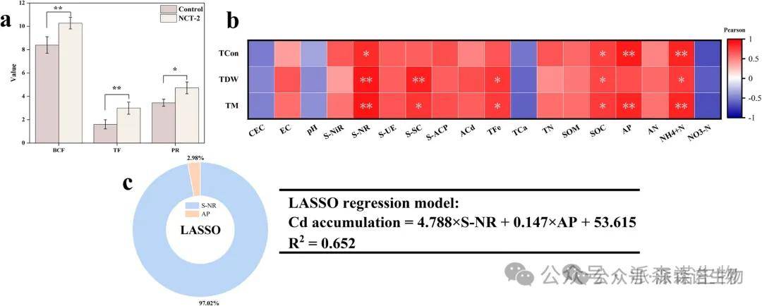 接种PGPR菌株NCT-2能够有效提高植物S. nigrum对镉的修复效率(图 2a),而这种增强作用可能主要通过改善根际土壤S-NR活性来实现。