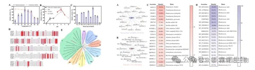 图3:CymE1的酶学特性研究及其在不同菌株中的分布